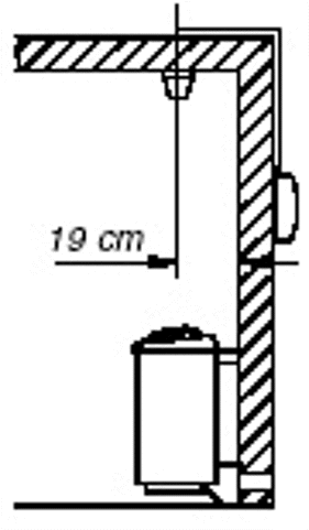 | 1. Der Ofenfühler wird in Kabinen bis zu der Größe von 2 x 2 m gemäß Abb. oben links montiert, in größeren Kabinen gemäß Abb. oben rechts montiert. | |||||
