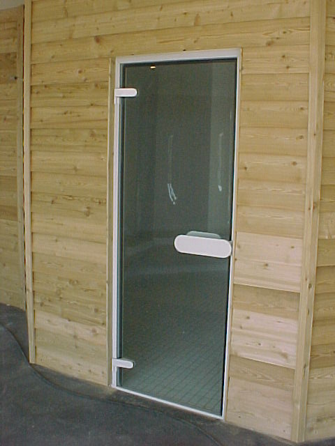 Außenansicht (von links nach rechts): Sauna, Dampfbad, Kolldarium, Sauna