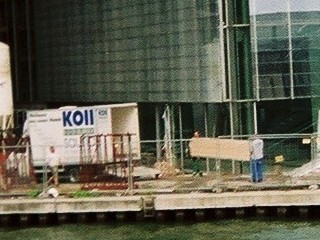 Vordergrund LKW während der Montage auf der Baustelle. |