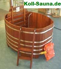 Koll Holzbadebecken (Sicht von holzbeheiztem Ofen) Abbildung teilweise mit Dekoration und Sonderausstattungen. |